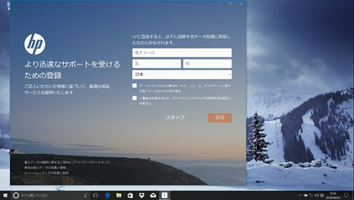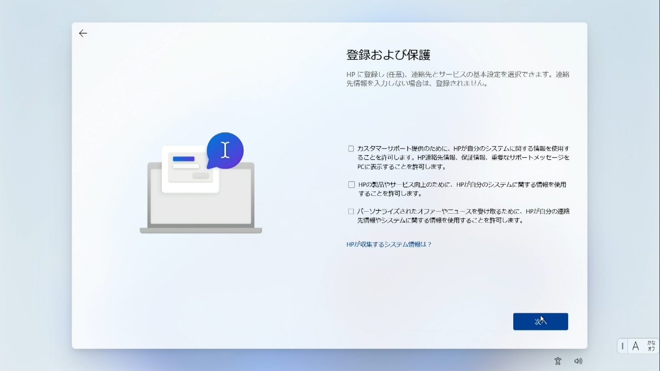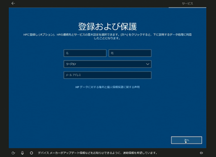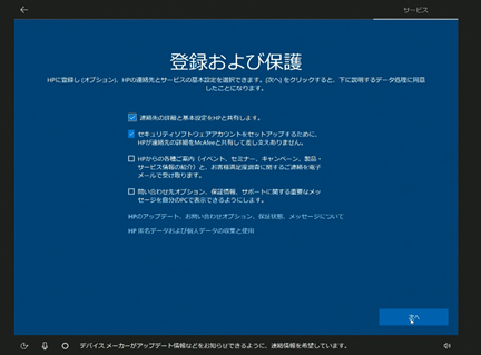HPへ登録しない場合、空白のままで「次へ」をクリックします。以下の画像をご参照ください。