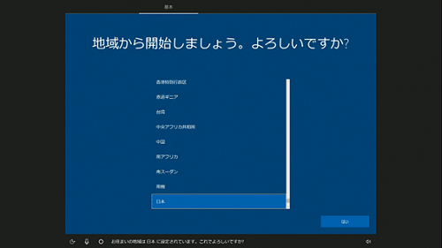 2. [お住まいの地域はこちらでよろしいですか?] と表示されたら、[日本] を選択して、[はい] をクリックします。