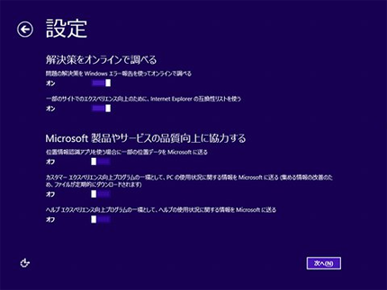 c.【PC を保護し、最新の状態に保つ】においては、お使いになるアプリケーションの使用状況や位置情報を Microsoft に送信するかどうかを選択することができます。