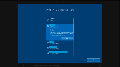c.再度【次へ】をクリックして、無線LANのSSIDが表示された場合、手順6を参照してインターネットを接続します。