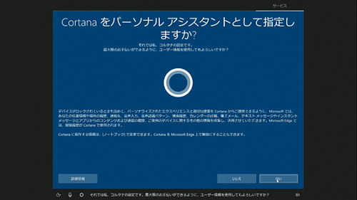 ( 初期設定完了後、設定 > Cortana 等で設定することができます。 )