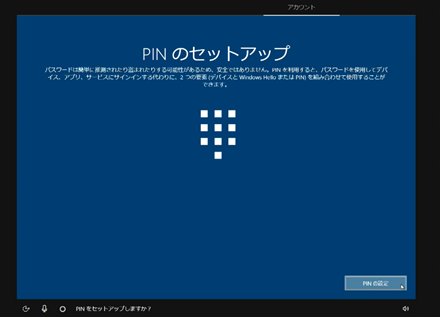 ※ 必要な場合、セットアップ完了後、Microsoftアカウントへの変更は可能です。