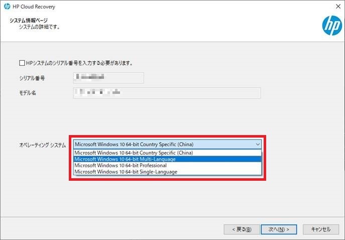 ※ HP Cloud Recovery ダウンロードツールは、HP製以外の一部パソコンでは実行できない場合があります。
