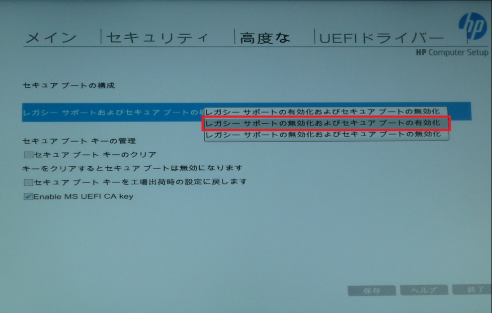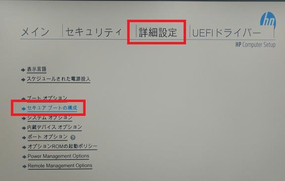 1.HP Cloud Recoveryツールの実施にあたり、セキュアブートでインストールします。