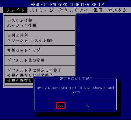 10."変更を保存して終了" ウインドウが表示されますので、[Yes] が選択されていることを確認し、