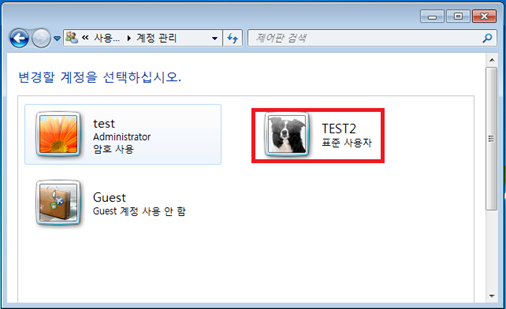 [ 참고 ] 관리자는 모든 사용자에게 영향을 줄 수 있는 계정이므로 , PC 를 관리 및 소유한 사용자 이외에는 표준 사용자로 설정하시기 바랍니다 .
