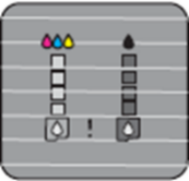 1. 검정 잉크 카트리지의 잉크 잔여량이 부족합니다. 2. 검정 잉크 카트리지가 제거되었습니다. |