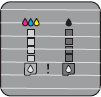 1. 잉크 카트리지를 설치하거나, 제거하고 다시 설치합니다. 2. 흑백 잉크 카트리지를 제거합니다. 3. 잉크 카트리지 덮개를 닫습니다. 4. 전원 표시등을 확인합니다. - 전원 표시등이 깜박이면 컬러 잉크 카트리지를 교체합니다. - 전원 표시등이 계속 켜져 있으면 흑백 잉크 카트리지를 교체합니다. 5. 호환되지 않는 잉크 카트리지가 설치되었을 수 있습니다. 상세한 내용은 사용자 설명서를 참고합니다. |