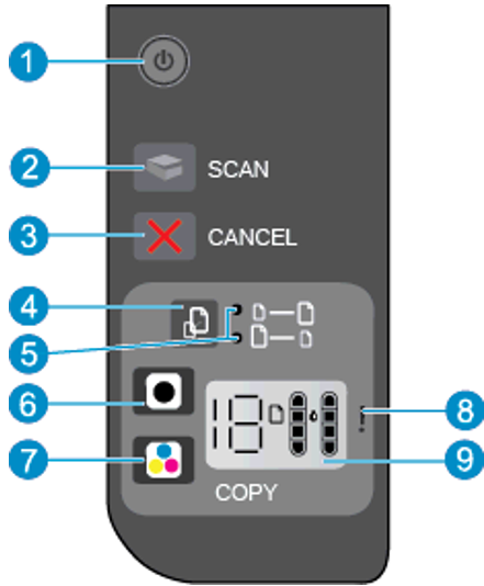 HP DeskJet 2520hc 제어판 램프 상태 및 오류 메세지