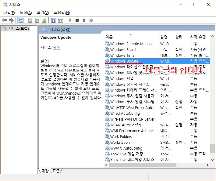 2. 서비스 항목에서 [WINDOWS UPDATE] 항목을 찾아 더블 클릭합니다 .
