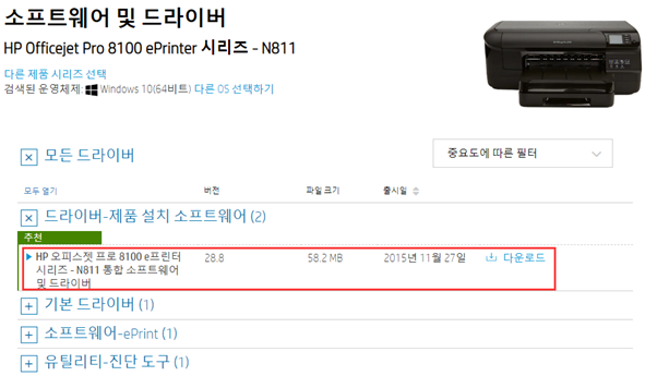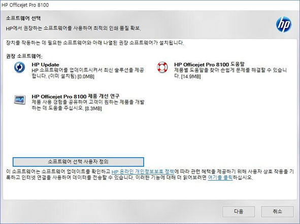 3. HP홈페이지에서 제품 통합 소프트웨어를 다운 받고 실행합니다.