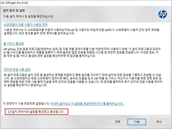 5. 설치 계약서에 동의하고 다음을 누릅니다.
