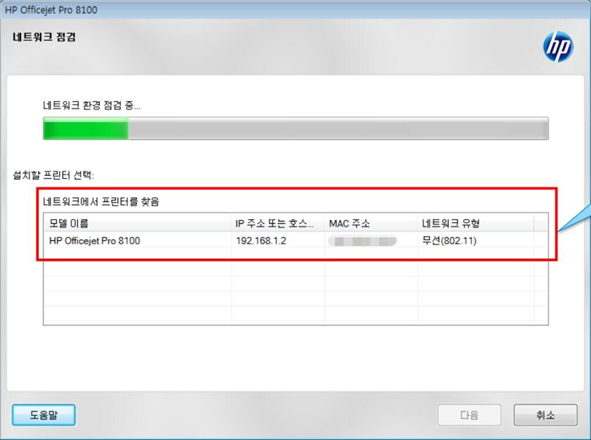 2. 소프트웨어 설치를 더이상 진행할 수 없지만 프린터를 무선 네트워크에 연결하는 작업은 이미 완료되었기 때문에 프린터와 같은 네트워크(SSID, 라우터)에 연결되었거나 같은 대역의 IP주소가 할당된 컴퓨터에서는 정상적으로 사용할 수 있으며 무선 연결 설정을 중복으로 진행할 필요가 없습니다.
