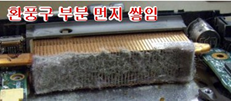 환경에 따라 시스템에 아래와 같이 먼지가 자주 쌓일 수 있습니다. 그러므로, 1년에 한번씩 주기적으로 청소를