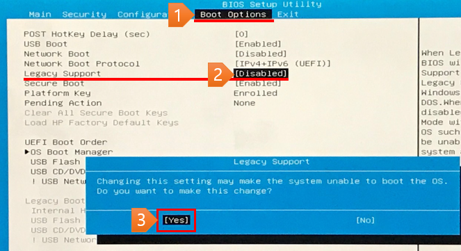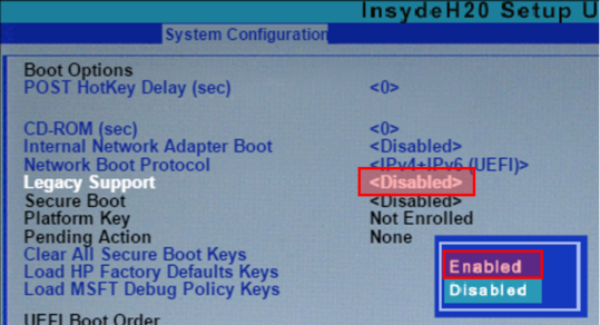 [2] Legacy Support를 [Disabled]로 설정합니다.