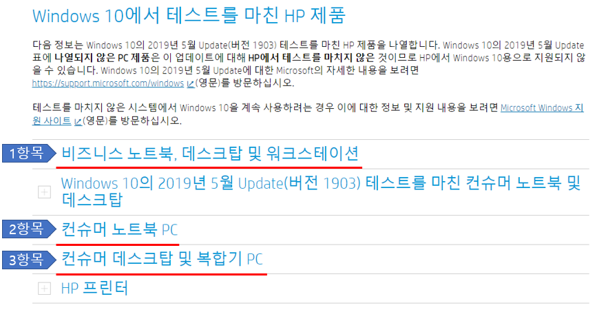 1. HP 윈도우10 호환 모델 안내 사이트로 이동 해주시기 바랍니다.