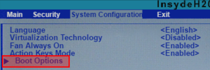 2. BIOS 설정 화면에서 [Advanced] – [BOOT Options] 항목으로 진입 합니다.