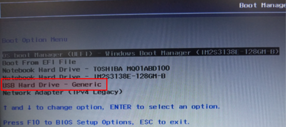 2. USB Hard Drive (UEFI)를 선택합니다.