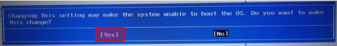 5. [이 설정을 변경할 경우 운영체제로 부팅할 수 없습니다. 이 설정을 변경할 것입니까?]라는 메시지가 표시되면 [YES]를 선택합니다.