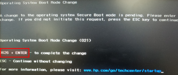 7. 시스템이 재부팅 하면서 운영체제 부트 모드 변경에 대한 메시지가 표시됩니다. 아래의 4자리 숫자를 입력하고 [Enter키]를 눌러 주세요.