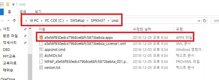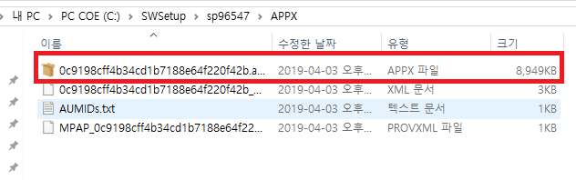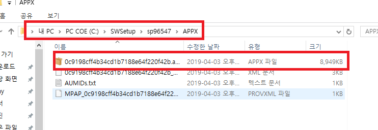 4. 해당 폴더에 APPX파일 형식으로 되어있는 파일 을 확인하고 실행합니다.