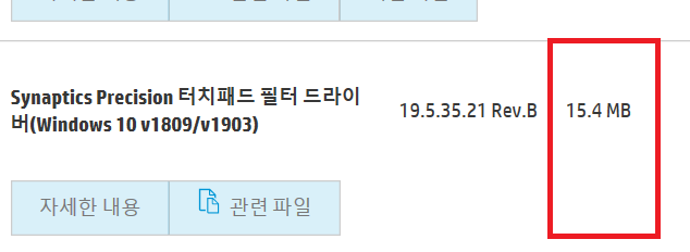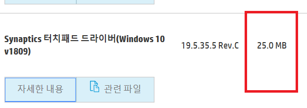 최근 Windows10 용 Synaptic s 터치패드 드라이버 가 대부분 아래와 같이 20MB 정도로 제공되며 드라이버를 설치해도 “ Windows 설정 ” 이나 “ 제어판= > 마우스 속성 ” 에 터치패드 관련 설정메뉴가 확인되지 않습니다.