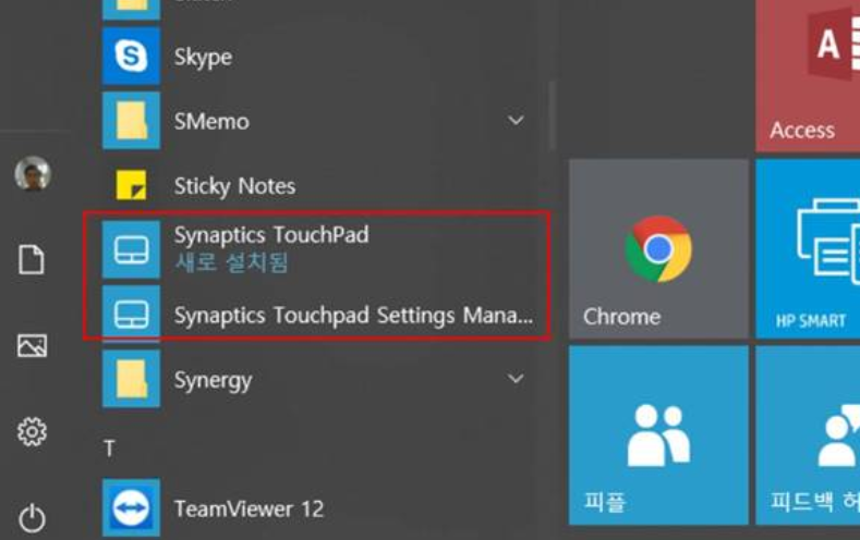 위와 같은 경우 Windows A pp 형식으로 지원되는 Synaptics App 을 별도 설치하여 문제를 해결할 수 있습니다.