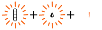 11. 두 잉크 레벨 아이콘과 잉크 방울 아이콘이 깜박거리고, 오류 표시등이 켜져 있습니다.