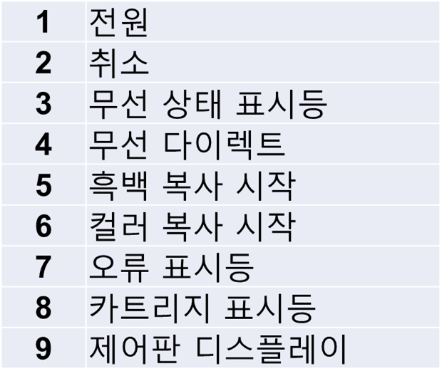 - 프린터가 켜지면 전원 버튼 표시등 에 불이 들어 옵니다.