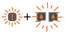 2. 오류 표시등 및 두 카트리지 표시등이 깜박입니다.
